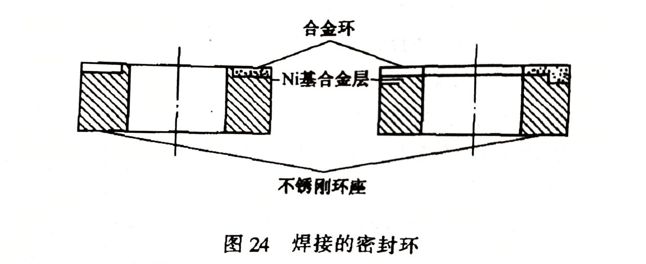 為改善熱裝式密封環松脫的問題,呈現了焊接的密封環(圖24)。所用的硬質合金是以Cr3C2為硬質相、Ni為粘結相的燒結合金材料。耐腐蝕優于YG6等硬質合金,高溫下具有優異的抗氧化性能,在1000℃空氣中加熱2小時無任何變化。可是導熱性能較差,僅為YG6的1/3;線膨脹系數大,比YG6大1倍多,為10.2x10-6/℃(10~500℃時)。這兩點導致了耐熱沖擊性能不如YG6好。正因為線膨脹系數較大,和馬氏體不銹鋼接近(10~500℃時為11x10-6/℃),為和環座焊接提供了有利條件。焊接時需在環和座之間鋪放一層鎳基粉末,置于真空電阻爐中,經1100℃高溫熔焊,然后進行回火處理,以消除焊接應力。由于是焊接的密封環,硬質合金環的厚度可以比YG6薄,毛坯的厚度也只要3~3.5mm。又因密度小,是YG6的一半(7~7.5g/cm3),因此,可節約貴重金屬,價格較低。這種合金的牌號為CN15,其間Cr3C2 85%、Ni 15%,由北京硬質合金廠研制成功。