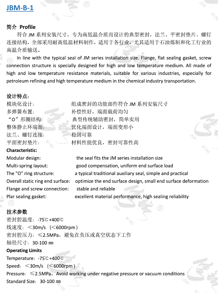 符合JM系列安裝尺寸,專為高低溫介質(zhì)而設計的典型密封,法蘭、平密封墊片、螺釘連接結(jié)構(gòu),全部采用耐高低溫材料制作,適用于各行業(yè),尤其適用于石油煉制和化工行業(yè)的高溫介質(zhì)輸送。