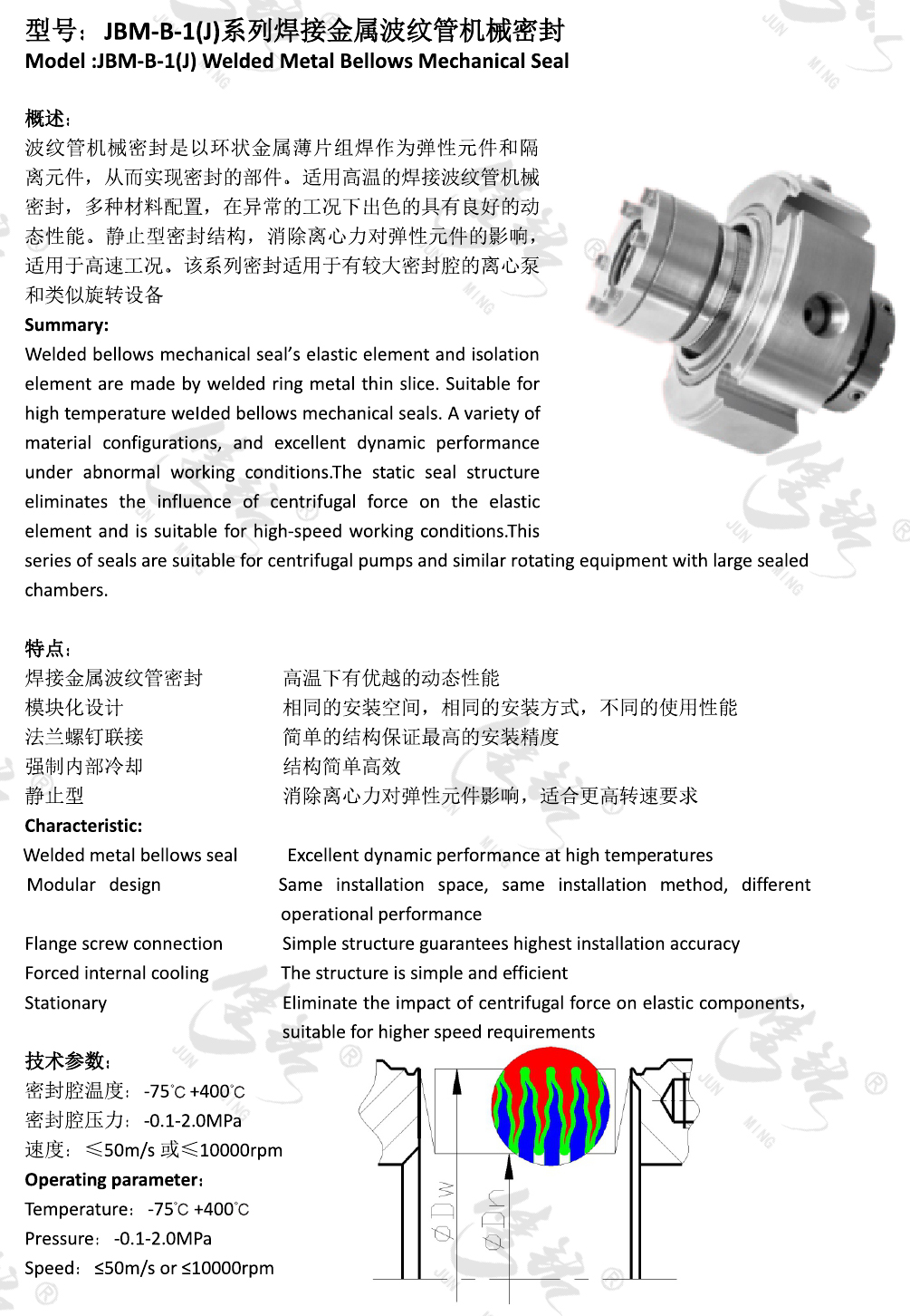 波紋管機械密封是以環狀金屬薄片組焊作為彈性元件和隔離元件,從而實現密封的部件。適用高溫的焊接波紋管機械密封,多種材料配置,在異常的工況下出色的具有良好的動態性能。靜止型密封結構,消除離心力對彈性元件的影響,適用于高速工況。該系列密封適用于有較大密封腔的離心泵和類似旋轉設備